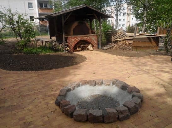 Neben unserer Feuerstelle gibt es einen Lehmbackofen, in dem wir selbst Brot, Pizza und Kuchen backen können.